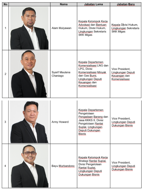 MIGASNEWS.CO, JAKARTA - Satuan Kerja Khusus Pelaksana Kegiatan Usaha Hulu Minyak dan Gas Bumi (SKK Migas) secara resmi telah mengumumkan pelantikan 4 (empat) Pejabat setingkat Kepala Divisi. Pelantikan pejabat baru tersebut dilakukan oleh Kepala SKK Migas Djoko Siswanto dan didampingi manajemen SKK Migas di kantor SKK Migas, Jakarta, Jumat (9/1/2026).